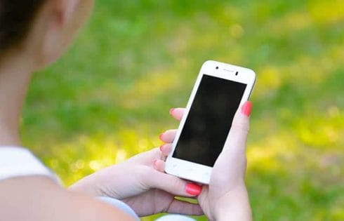 Woman Using Mobile Smart Phone Outdoors